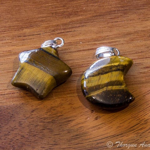 Två fina hängen av handslipad Röd Jaspis i form av en Stjärna, med silverfärgat fäste. OBS! Månen är slut.