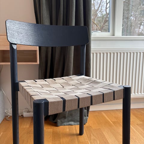 4 fina köksstolar med svart flätat sadeljord.