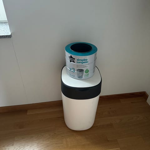 Blöjhink från tommee tippee i bra skick. Finns refillpåsar att köpa (ingår ej) och en sån rulle varar ganska länge, även i början när det går åt mycket blöjor :) påsarna man köper heter Tommee Tippee Simplee Sangenic Refill.