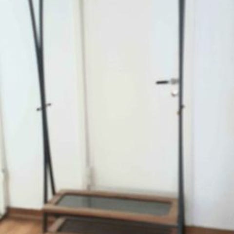 Vägghängd klädhängare i metall och trä