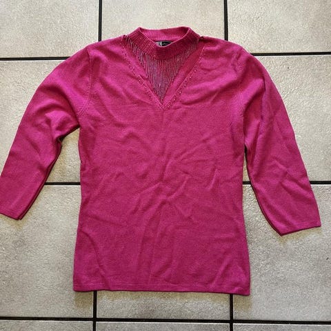 En svart glittrig tröja från Luc & Ce. Den är använd få gånger. Det står ingen storlek, men den är som S. Tröjan är finare i verkligheten.