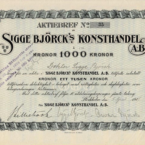 Aktiebrev Nya Marmorbruksaktiebolaget 1914