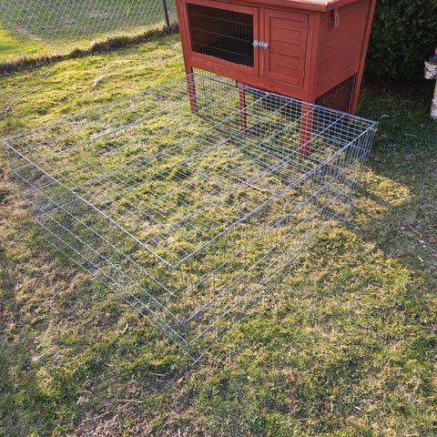 Flerfacksbur säljes. Använd till kanin. Två nedersta burarna finns ett hål för att kunna gå mellan två burar. Se bild 6.