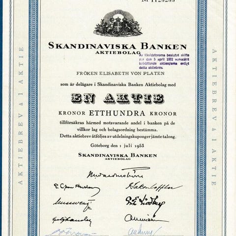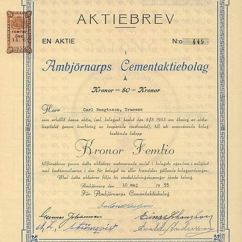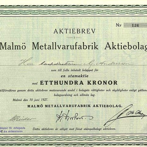 Aktiebrev Lund & Pettersons eftf AB 1943.