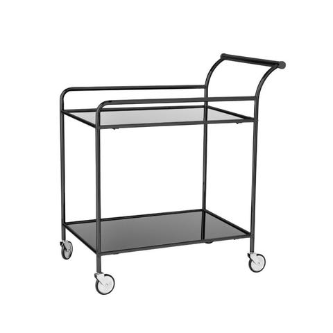 Fin drinkvagn, svart ram i stål med grå hyllplan i metall. Inköpt av oss på auktion på Bukowskis men är ursprungligen designad av Niels Gammelgaard för Ikea.