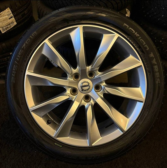Motala Bil och Service AB erbjuder en mycket fin uppsättning 18-tums Volvo original aluminiumfälgar, utrustade med CONTINENTAL VIKINGCONTACT 7 – ett av marknadens bästa dubbfria vinterdäck, känt för hög säkerhet, grepp och komfort.