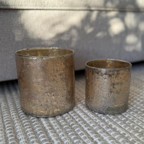 Rustika i antikglas med metalltråds nät i rost-svart utanpå glaset.