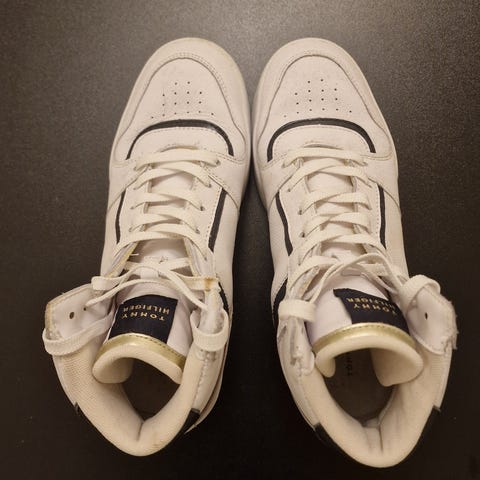 Mycket fina sneakers från Tommy Hilfiger i läder. Min son har använt dem ett par ggr men hans fötter växer så det knakar och dessvärre är de redan för små!