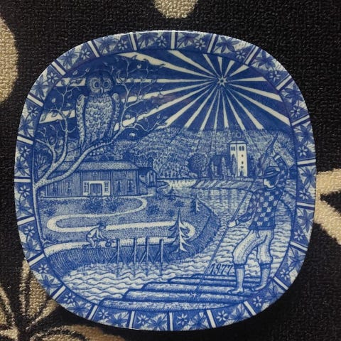 Motivet ritat av Ragnar Carlsson och utfört i äkta kobolt.