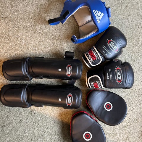 boxningshandskar och benskydd