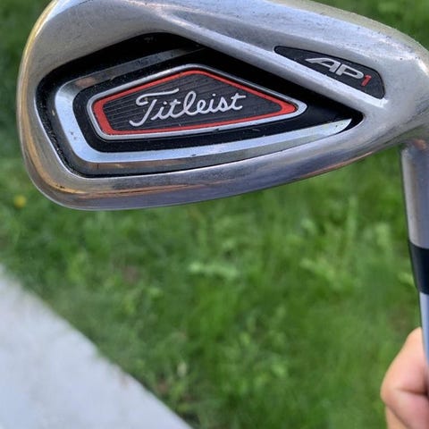 Säljer ett Titleist AP1 järnset , 4-PW, AW , i använt men fint skick, höger och Stiff skaft.