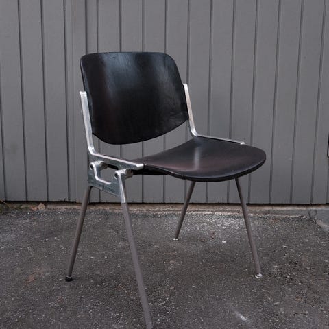 Dessa snygga, stapelbara stolar kombinerar svart och gult för en levande och retro känsla. Sittytan är klädd i gul linne, vilket ger en behaglig och naturlig känsla, medan de svarta träramarna ger ett elegant och tidlöst utseende.