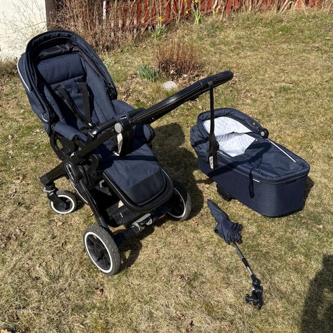 Bugaboo buffalo i gott skick som har mycket kvar att ge. Mycket smidig vagn som tar lite plats ihopvikt. Funkar bra även på grusvägar. Liggdel och sittdel i blå färg, det svarta något solblekt, se foton. Hämtas i Tibro.