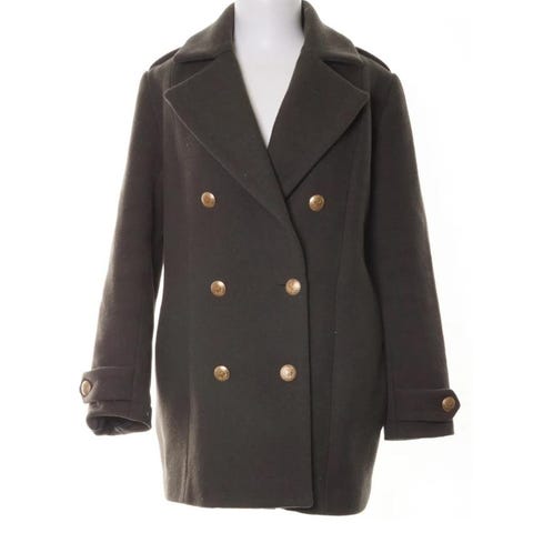 Dolda fickor i sidan och fin dubbelkrage, så den kan vara upp- eller nedfälld. Ullblandning så bra och varm nu i vinter. Mycket bra kvalitet. Stl S (36/38), kan passa mindre eller större beroende på önskad passform.
