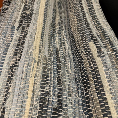 Sökord: bomull, naturmaterial, handarbete, garn, täcke, överkast, pläd, shabby chic, vintage, recycle.