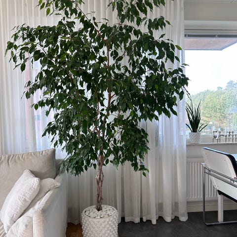 En jättefin stor robust konstgjort träd. Höjd ca 280 cm Riktigt bra kvalitet på bladverken och även på korgen. Har 3 meter i takhöjd se bilder Ny pris för trädet och korgen ca 24000.