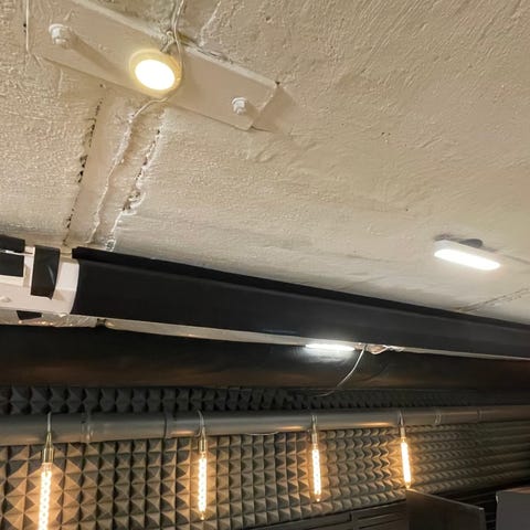 Bor man inom 20 mil från Sundsvall, ungefär Gävle, Östersund, Umeå kan vi mötas halvvägs så får man duken levererad direkt. 104" ger rejält stor bild i ett vanligt vardagsrum, rekommenderas om man är sugen på riktig biokänsla i sitt eget hem.