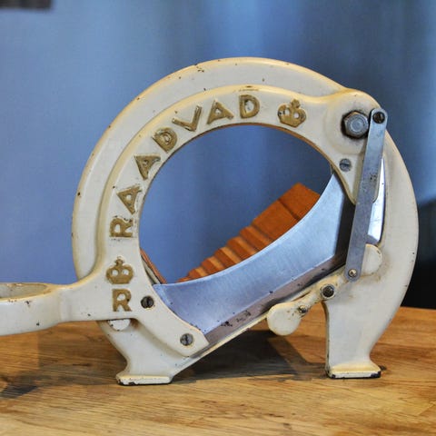 Lätt begagnad manuell frukt & grönsaksskärare Edlund ARC-125 Slicer i fint skick, med 6,35 mm skärblad.