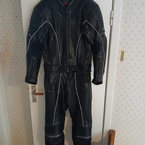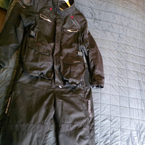 Säljer mitt MC ställ då det aldrig kom till användning. Det är ett allvädersställ där både byxorna och jackan har avtagbart foder. Ryggskyddet ingår också i priset.