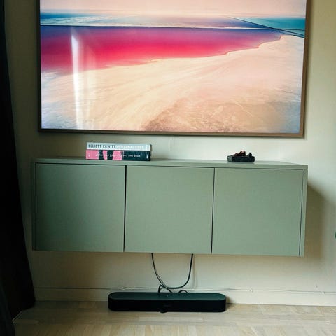 Skåpet har hål för kabeldragning, perfekt om det används som TV-bänk. Luckorna är släta med push-open och är monterade med 153° Utrusta-gångjärn, vilket gör att det även går att installera lådor. På ena bakstycken på ena stommen finns ett hål förberett för inbyggt eluttag. Väggskena för upphängning medföljer.