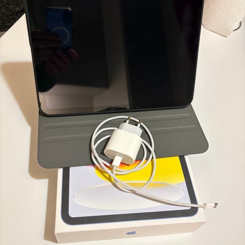 Säljer en iPad Pro 11 tum med ljusrosa Smart Folio. Det finns spricka på skärmen som inte syns när den används, inte heller märks när Apple Pencil används.