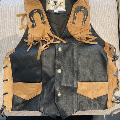 Varmodrad "skinn"jacka i sk Bikermodell med löstagbar luva i stl 122.