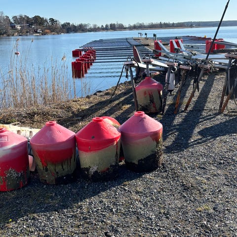 Har 4 st y bommar över. De är 10m långa och 2 m breda. Går enkelt att korta ner om man önskar.