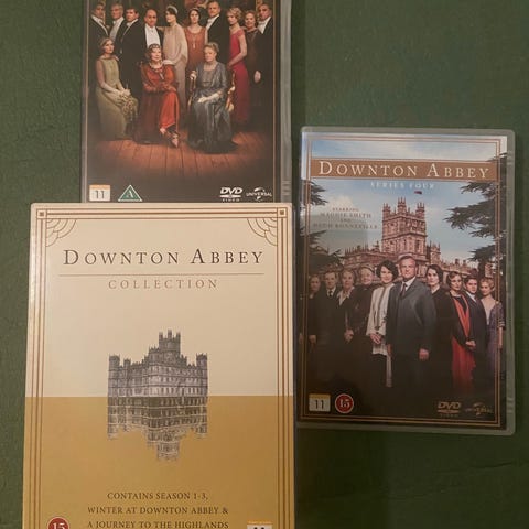 Komplett samling av Downton Abbey på DVD. Innehåller säsongerna 1 till 4 samt två specialutgåvor: 'Winter at Downton' och 'A Journey to the Highlands'. Perfekt för den som vill uppleva hela serien. Totalt 14 stycken DVD.