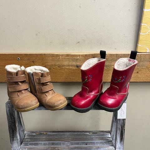 1 par brun skor med karborband i stl 18-19 samt 3 par Happy socks nya i stl 0-12 mån och 6-12 mån