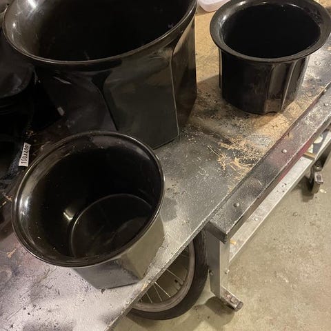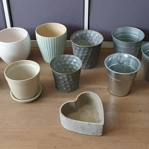 10 st krukor vackra grön med 2 st guld öron på sidorna. Innermått 12 cm och höjd 12 cm. Fint Stafforrdshire porslin England. Pris för alla