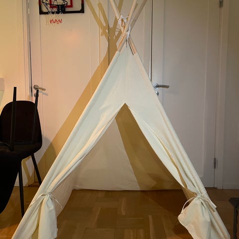 Jag säljer ett superfint tipi tält från Alice & Fox. Det ända som går att anmärka på är ett litet hål ca 1 cm längst ner i ett av hörnen.
