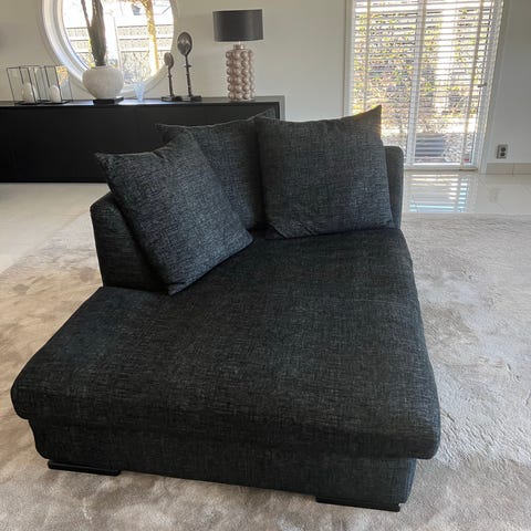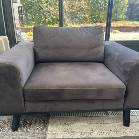 Säljer två stycken mörkgrå loveseat-fåtölj då de är för stora för att få plats hemma hos oss.