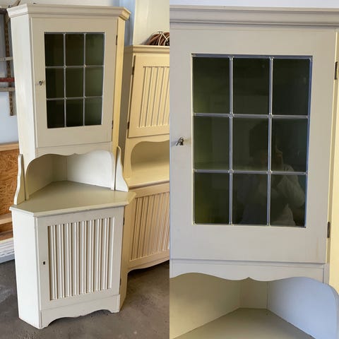 Gammalt vitt hörnskåp