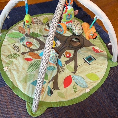 En skön, färgglad och mysig babygymp. Fullt med skogens djur i både plast och mjukt material. Aktiverar barnets många växande sinnen och nyfikenhet. Rök och djurfri hem.
