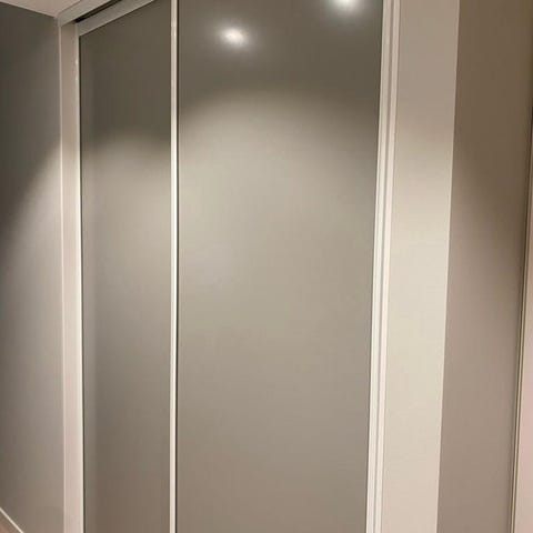 1x Elfa forma (den lyxigare varianten) skjutdörr Plain i vit aluminium med mjukstängning säljes. Nyskick, endast installerad. Se bild för fler detaljer. Funkar utmärkt att på egen hand eller via glasmästare montera på spegel i ramen.