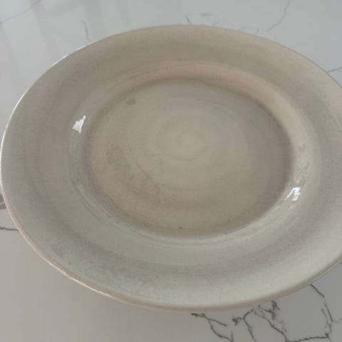 Rund, djup tallrik med bred kant 25cm från serien Bistro Åhléns. Det finns totalt 14 st varav mer än hälften helt oanvända.