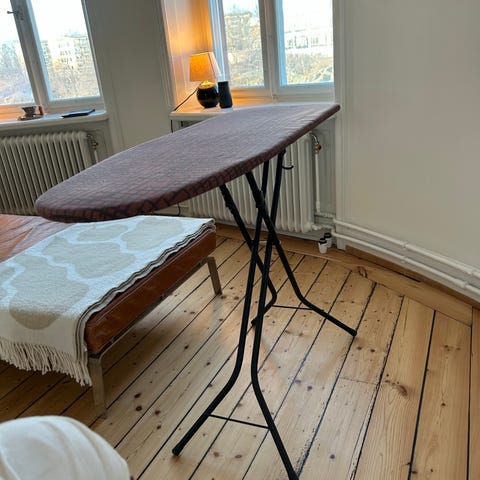 Bord: Original i trä med klaff och förvaringsutrymme.