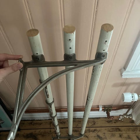 Snygg retro hatthylla i furu. Troligen handgjord.