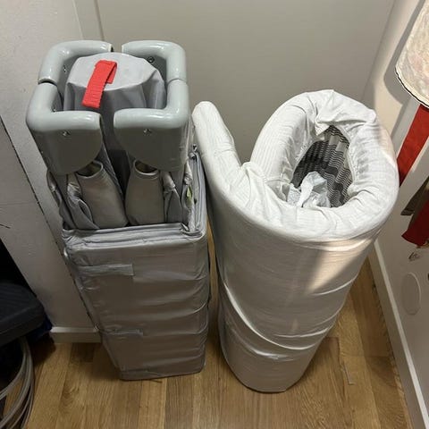 Denna resesäng jättebra att ha när man har en bebis som kryper runt mycket hemma. Den kan fällas ut och användas som lekhage!