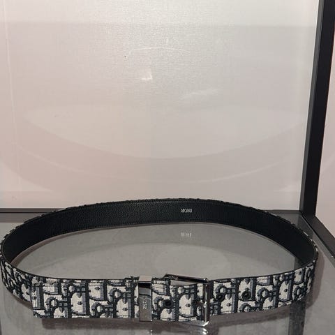 Säljer ett exklusivt Christian Dior-bälte i navy blå med det ikoniska industriella spännet.