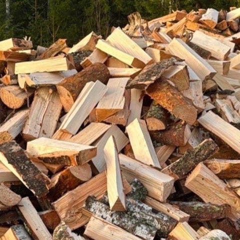 Kapad och kluven torr björkved och blandved.