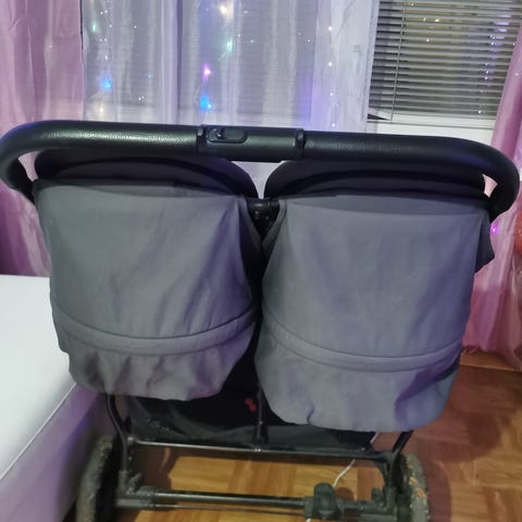 Utöver det saknas bygeln till båda sitsarna. Ingår både regn och myggskydd. Lite solblekt på sina ställen. Se bilder och skicka ett meddelande om ni vill ha fler bilder!