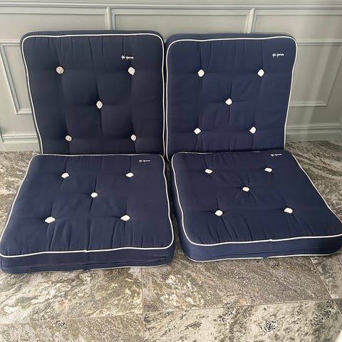 En dyna till Fri Form Elsa Stackelberg utemöbel. Brun och vitrandig. Vit passpoal intakt men lite småfläckar. 55x55