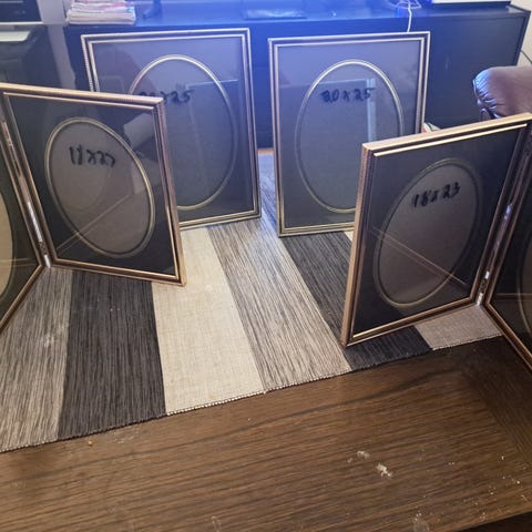 Säljer två superfina fotoramar med ett charmigt,lantligt utseende (shabby chic-stil) i en mjuk rosa ton med krackelerad finish. Perfekta till barnrummet eller som en fin gåva till dop eller födelsedag.