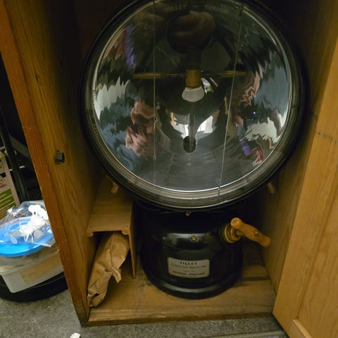 Fototon, 1950-tal Svartmålad aluminium. Längd på strålkastaren ca 73 cm samt i höjd reglerbart och rullbart stativ. Den totala höjden blir ca 160 till 220 cm. Original, löstagbara skärmklaffar. Strålkastaren är riktbar med viss zoomfunktion. F.d. 10 Kw, nu konverterad till vanlig glödlampa och ca 2 m sladd. Strömbrytaren fungerar. Proveniens: Svensk Filmindustri logga synbar. https://www.filmsoundsweden.se/backspegel/fototon.html