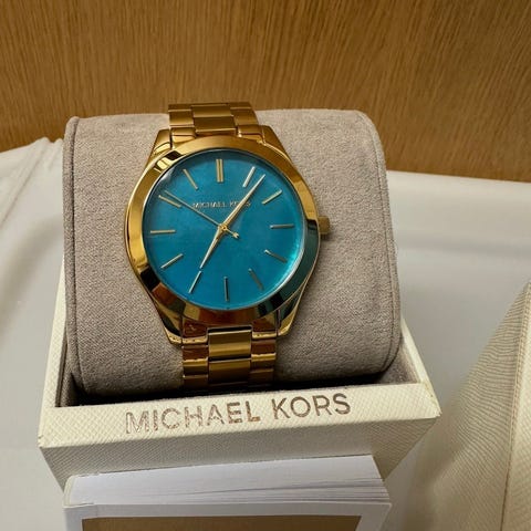 ✨ Säljer en Michael Kors damklocka i elegant guldfärgat rostfritt stål – en lyxig accessoar som passar lika bra till vardags som till fest. Det är en damklocka men då den är ganska ”chunky” i sin modell har den genom tiderna varit en av varumärkets populäraste modeller och då även som Unisex