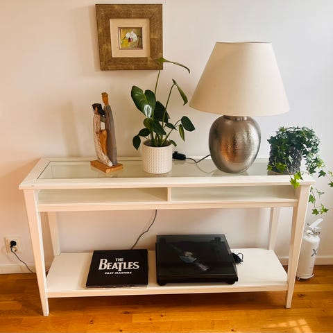 Avlastningsbord med utdragbar skiva och hjul H: 68 cm D: 45 cm B: 55 cm Utdragbar skiva 55 cm