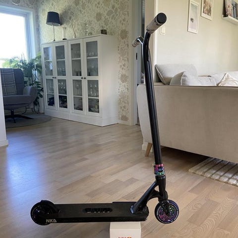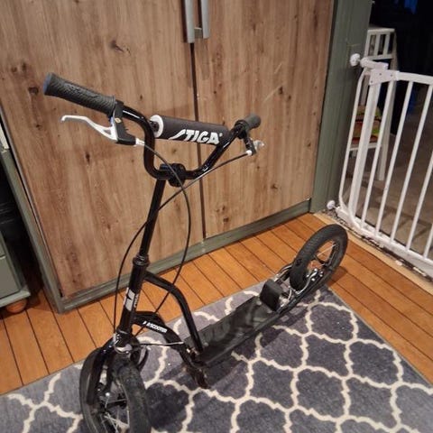 En Stiga Air sparkcykel,handbromsar fram och bak hjul.