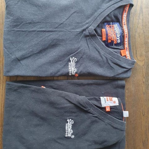 SuperDry orange lablel t-shirts, 3 st i fint skick, en vit med rund hals och lång ärm, en grå med rund hals och kort ärm, en svart med kort ärm och v-ringad hals. 125 kr/st eller alla 3 för 300 kr