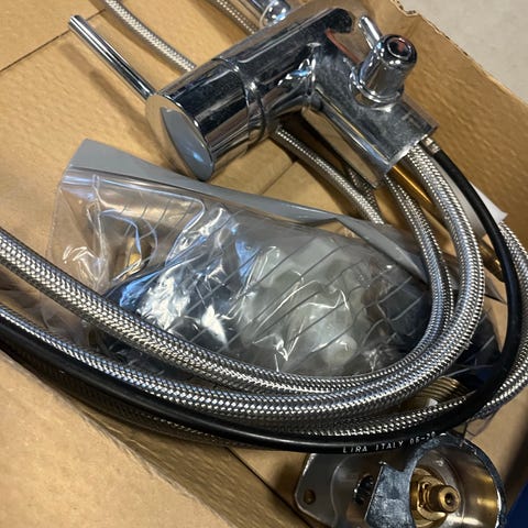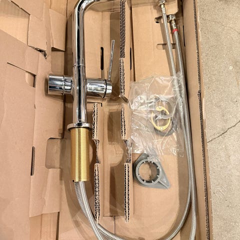 I fint skick utan skador. Dock är den utdragbara slangen trasig och behöver bara bytas. Totalt mått 32,8 cm hög. Grohe engrepps köksblandare tillverkad av mässing med silvergrå finish. Köksblandaren har en hög L-formad pip som kan rotera i 360 graders vinkel. Den har två jetalternativ.